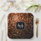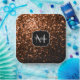 Bronze brown copper faux glitters sparkle Monogram Paper Plate