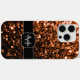 Bronze faux glitter sparkles Monogram iPhone 15 Case. Personalize Sparkly iPhone case with your initial and name. Beautiful girly glamourous shiny glitters sparkles. Photo of sparkles not actual glitter!