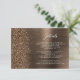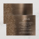 This elegant modern wedding details enclosure card features a bronze brushed metal background image sprinkled with chunky diamond faux glitter. Customize the white text, with the title "Details" in stylish handwriting script and the remaining text in sans serif font. The reverse side features a matching bronze brushed metal and faux glitter design.