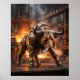 Powerful and unstoppable, this bronze bull design features cast bronze armour, reinforced steel joints, glowing eyes, lowered horns, and steam venting from its nostrils. Standing before a blazing furnace gate of molten metal, catwalks, chains, smoke, and flying sparks, the bull symbolizes wealth, strength, and determination. Perfect for offices, finance spaces, studios, and masculine interiors. A commanding statement piece for fans of industrial décor, bullish energy, and premium mechanical animal art.