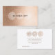 Gorgeous faux rosey/bronze gold foil background with a trendy white doodle trio design behind your printed name to really make your name pop on these modern, simple and chic business appointment cards. Womens business card template that you can personalize easily yourself here and now online and have them delivered to your door! Gorgeous top quality professional printing!