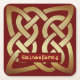Set here over an earthy red background, the bronze toned celtic knot serves to set the stage for a box holding your text.