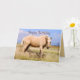 A beautiful palomino horse stands in a windswept pasture. Another view of the horse is on the back of the card. You can personalize this card by changing the name.
