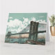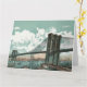 The iconic Brooklyn Bridge! This amazing structure is featured on a sewing machine advertising card from the late nineteenth century. It has been cleaned and "mended" and its pleasant blue sky with clouds provides plenty of room for personalization. The print exhibits a soft freckled pattern distinctive of chromolithography printing. The background has been brightened to an eggshell white to better compliment modern decor.