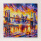 The Brooklyn Bridge, an architectural marvel completed in 1883, symbolized industrial innovation and urban elegance. Its sweeping arches and steel cables connect Brooklyn to Manhattan, embodying timeless glamour and historical significance.Using the acrylic style with golden and lavender tones on this iconic marvel.