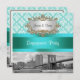 Elegant, stylish, chic customizable Invitations and accessories with a black and white East River skyline view of New York City's iconic Brooklyn Bridge and Municipal Building with a boat passing by. They also feature a Turquoise Blue (aka Robins Egg Blue) & white damask pattern, a teal ribbon and a white label in your choice of a silver or gold look frame. (Note: some coordinating accessories may not have the above mentioned photo or additional design elements.)