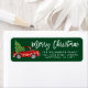 Brosse Script Watercolor Vintage Camion rouge avec arbre de Noël - Joyeux Noël Famille Retourner Adresse Label