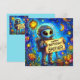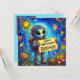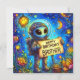 A cute alien astronaut, celebrating his brother's birthday. The Greetings on the card are "Happy Birthday Brother". On the back of the card is a small version of the front picture, and plenty of room to write a message. Made with the assistance of AI Bing.