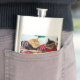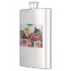 The product is a good size and came exactly as it was pictured. The lid is not attached to the flask, which could be dangerous on drunken nights... The print came out surprisingly well and looks very sharp. Would definitely recommend.