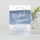 Créez une impression unique sur votre fête de mariage avec cette invitation captivante à la douche nuptiale. Il dispose d'une aquarelle couleur bleu taché fond Vos détails sont au centre dans une couleur marine foncée correspondant à la gamme d'aquarelle. Tous les éléments de cet élément sont déverrouillés et personnalisables, alors amusez-vous à le créer et à le faire vous-même.