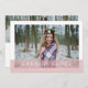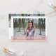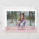 Chic graduation faire-part et invitation de la fête comprend une seule photo sur le devant, avec votre nom, l'école et l'année de classe en lettres blanches sur une simple bande de rose vif. Ajoutez trois photos supplémentaires à l'arrière et personnalisez avec vos détails de fête de remise de diplômes.