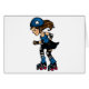 Une bande dessinée numérique impressionnante d'un bleu de port de fille de rouleau, jouant la position de brouilleur comme elle déchire autour de la voie. Ses longs cheveux coulent derrière elle comme ses roues roses sur ses quadskates tournent.