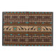 Cool brown and beige tone with white and blue accents, african ethnic geometric pattern with giraffe figure.