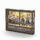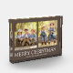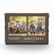 Acrylic photo block with 2 of your favourite photos on a customizable brown background. Text says, "Merry Christmas." but make it say anything you want. Personalized with names or your own additional text.