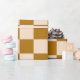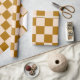 Checkerboard pattern with alternating brown and beige squares, arranged in a grid. The design is uniform and evokes a sense of order and symmetry.