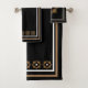This bath towel set has a contemporary geometric design. Over laid on a black background, the design features black and brown squares and diamonds. You can customize the background colour. Wash cloth, hand towel and bath towel can be bought as a set or individually