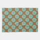 Features a blue geometric floral pattern on a brown background.