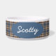 Cute brown and blue plaid with a blue name plate. Customize it with your pet's name.