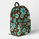 Fun backpack that features retro mod aqua blue and white flowers on brown background. Be sure to check out the other clothing and accessories in this same pattern collection.