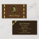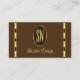 YOUR FAVORITE - Make a lasting impression with this elegant and luxury business card design featuring shimmery golden decor borders and oval frame with monogram on a brown background and the back is dark brown.