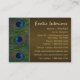 This richly coloured peacock feathers business card has a FAUX gold band to add an extra luxurious look to the card. The beautiful shades of teal blue, plum, navy, brown, green and bronze all intertwine together to give this card an air of drama and sophistication. All the text is customizable, and you can select from a variety of paper types. It is shown here on basic white stock, but would sparkle especially well on the pearlescent paper. You can also remove the back peacock feather design if you need extra room for the text. If you require any changes, or need any other matching items etc., please email niteowlstudio@gmail.com.