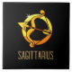Brown and Gold Sagittarius Zodiac Sign on Black Background signifies the adventurous spirit of Sagittarius complemented by rich brown hues and sparkling gold accents, representing optimism, exploration, and a quest for knowledge.