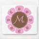 Pink and brown flower design monogram tote bags, mugs, mousepads, T-shirts, and more with the initial "M". These monogram initial items make great gifts for the girls in the wedding party and mother and grandmother of the bride and groom too!