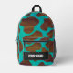 Brown and Teal Cow Pattern Monogram Printed Backpack