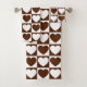 Brown and White Chequered Pattern With Hearts Bath Towel Set