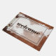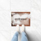 Brown and white cowhide welcome typography doormat