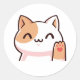 Brown and White Cute Waving Cat Sticker