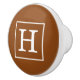 Brown and White Framed Initial Monogram <br> </br> Ceramic Knob