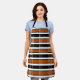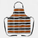 This apron has a geometric design of a plaid with brown and white lines on a black background.