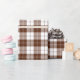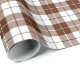 A wrapping paper designed with a brown and white plaid pattern. Customize the white background among other options.