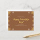Celebrate the joy of friendship with this beautiful Friendship Day postcard. Featuring a warm brown background adorned with playful yellow and beige starburst graphics, this postcard is designed to convey heartfelt emotions. The front message expresses gratitude and appreciation for your dear best friend, making it a perfect keepsake. Additionally, you can personalize the message on the back to add a special touch, making this card a memorable token of your friendship.