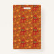 An adorable autumn hall pass badge for elementary school featuring a brown bear picking up a small pumpkin . Personalize it with the teacher's name .