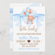 Brown Bear Blue Bow Baby Shower Invitation
