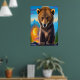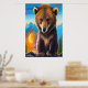A brown bear in the forest with mountain and forest in the background. This is a AI generated art.