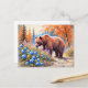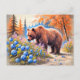 Brown Bear with Blueberries Pastel Chalk Art Postcard