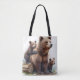 A beautiful depiction of a brown bear and her two cubs, showcasing family warmth and nature's beauty. The vivid colours and exquisite details highlight the animals in their natural habitat.