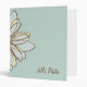 A binder featuring a blue background and an illustration of a brown flower partially filled with light blue at centre, covering the spine and portions of the front and back. Add your own text in brown at from right corner. Look for matching items at Jill's Paperie.
