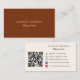 A rust, brown coloured background. Personalize and add your name, title and contact information. Add your website url/link to the Qr code. With Facebook and Instagram icons.