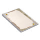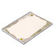 Beautiful vintage notes page in beige and brown colours, decorated with daisy blossoms and postage stamps in the background. Fill the lines with your own notes or any other text.