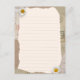 Beautiful vintage notes page in beige and brown colours, decorated with daisy blossoms and postage stamps in the background. Fill the lines with your own notes or any other text.