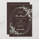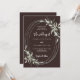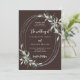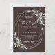 A bistre, dark brown background. Decorated with greenery and an oval frame. Personalize and add your names and details.