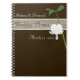 Keep track of all your spring, summer, fall, or winter wedding plans with this simple modern brown, green, and ivory wedding planner notebook with a PRINTED faux wood grain band across the top, along with a single white bleeding heart flower and stem with leaves that match the wedding invitation shown below. If you need help customizing this item, please email niteowlstudio@gmail.com for assistance.
