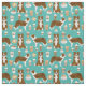 Brown border collie dog coffee lover turquoise fabric