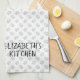Brown Boston Terrier Cartoon Dog & Custom Text Kitchen Towel