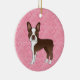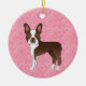 Brown Boston Terrier On Pink Hearts Pet Memorial Ceramic Ornament