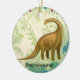 Original fine art design of a brown Brachiosaurus dinosaur by artist Carolyn McFann of Two Purring Cats Studio printed on a quality and easily customizable Christmas ornament. Great gift idea for birthdays, holidays or any occasion for kids to adults!
